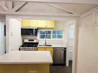Step inside to an open, airy layout featuring a large glass door that fills the living space with natural light and frames picturesque views. The cozy living room boasts exposed white beams, adding character and warmth, while the updated kitchen comes complete with all appliances—ideal for cooking and entertaining.