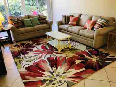 7 NIGHT MINIMUM REQUIREMENT. This unit has spared no expense! The unit has all new paint, Stainless Steel appliances, furnishings, art & decor and more. The unit is a corner, 1st floor Ocean Villa 1 condo, and has an open lanai. The kitchen is totally upgraded, and features a chef style convection oven. The living room is equipped with a queen sized sleeper sofa and a double sleeper sofa as well, with a large flat screen television mounted to the wall for your enjoyment. The master bedroom features a brand new king sized bed and a walk in closet with custom shelving. The bathroom has an upgraded, tiled walk in shower. Walk right in and relax, this unit is your Home Away From Home! Include wifi/ cable, washer/dryer, and all of the award winning amenities at Ocean Village