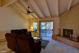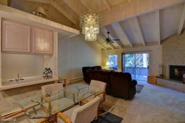 Incline Village: 3 bedrooms, 2.5 Bathrooms. This Mountain Shadows unit has a recently updated kitchen with granite tile countertops. The Family-room features a Wet bar, brick fireplace, and a large deck off of the living area. The bedroom have mirrored closets, level entry to kitchen living area, bedrooms downstairs, end unit.