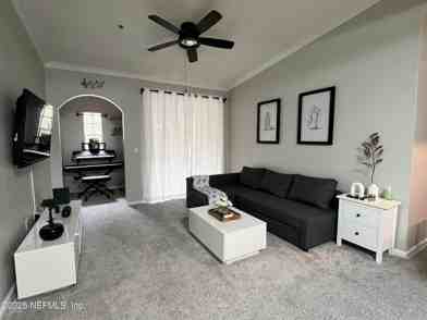 Gorgeous 3-bedroom, 2-bath condo located in the highly sought-after gated community of Mirabella! Perfectly situated between St. Johns Town Center and Tinseltown, this home offers both comfort and convenience. Enjoy an attached one-car garage, a stylish kitchen with stainless steel appliances, granite countertops, and modern finishes. The open layout features beautiful bamboo flooring throughout, a spacious living area, and a computer nook just off the screened-in patio-ideal for working from home or relaxing. The split-bedroom floor plan provides privacy, with a primary suite that includes a walk-in closet, dual vanity, and a garden tub/shower combo. A front-load washer and dryer are conveniently located in a separate laundry room. Experience resort-style living with Mirabella's amenities, including a luxury pool, fitness center, and clubhouse. Water and sewer are included,