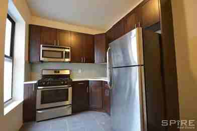 Renovated Large Three Bedroom (3rd bedroom is flexed) with closets. The apartment comes with an eat-in- kitchen, cherry wood cabinets, new stainless steel Frigidaire appliances, microwave, window tiled bathroom, South and North exposures, dark wooden floors throughout , prewar details, heat and hot water includedFor additional information 646 331 6703 SPIRE581641