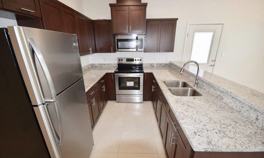 Enjoy beautiful open space interior design, porcelain tile, granite countertops, pendant lighting in the kitchen, and espresso custom cabinets with brushed nickel hardware. Ceiling Fan in Living and Bedrooms.