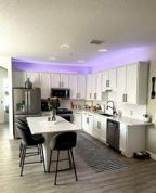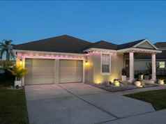 Additional features include a two-car garage and an outdoor kitchen area located in the backyard with lake views. The home is situated on a lot with rear water frontage, providing outdoor space and unobstructed views. Conveniently located near major roadways, shopping, dining, and local services.