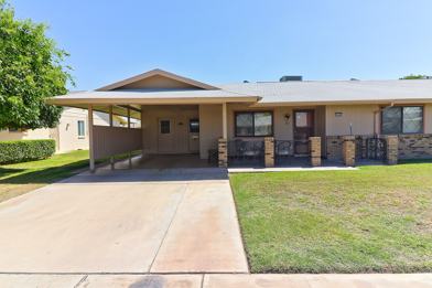 55+ Adult Community. Charming two bedroom/two bath home in Sun City. Covered back patio. Indoor laundry plus washer, dryer, dishwasher and refrigerator all included! Near golf courses, rec center and shopping.***$200 Non Refundable Administration Fee.***