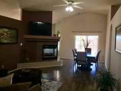 Spacious master bathroom with separate shower/tub, walk in closet. Two other bedrooms with full bath. Laminate floors in main living areas, carpet in bedrooms. Gas see through fireplace in dining. Large kitchen eating area, all appliances including washer and dryer. Garage door opener and some shelving. Lovely low maintenance landscaping, turf and gravel in back, shade trees, covered patio. Great neighborhood close to shopping and the I25. Call Liz for more information or to schedule a showing, (505) 250-1250.