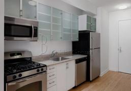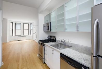 This flex 1br features modern finishes in a luxury building located in the heart of the Financial District. A charming bay window adds character to the open living area, which is enhanced by oak hardwood floors, high ceilings, and an expansive walk-in closet. The fully equipped kitchen offers generous cabinet space, natural stone countertops, and stainless steel appliances, including a microwave and dishwasher.