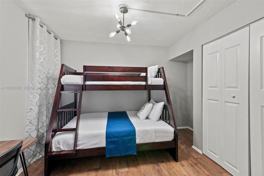 The unit is fully furnished. King bed in master bedroom with a bunk bed in the second bedroom. The bunk bed is a size full on the bottom and twin on top. Kitchen is fully equipped.