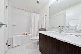 The single bedroom unit has a spacious den area that includes a complimentary queen size sofa bed and study area. In the kitchen, you\\\'ll find every appliance and necessities any chef could ask for. Right off the kitchen is the living room with floor to ceiling mirrors on the west wall, providing an impressively spacious appearance along with floor to ceiling windows facing north overlooking the bow river as well as the 10th Street bridge. The bedroom has a gorgeous view that peeks past through the balcony and has a walk-in closet that leads to the bathroom.