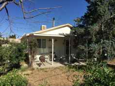 Wood burning stove, fenced yard with fruit trees and large open kitchen.