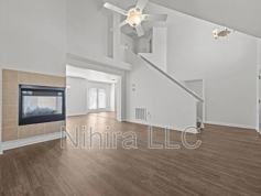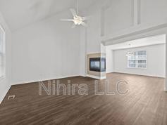 Spacious Living: The main living room features soaring vaulted ceilings, abundant natural light, and a cozy fireplace, creating a warm and inviting atmosphere.