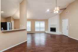 405 Lemon Dr, Arlington, TX is a 3 bedroom, 2 bathrooms apartment for rent. It is located in the Village Of Fairfield neighborhood of Arlington. It has apartment amenities including fireplace, high ceilings, ceiling fan, on-site laundry, deck, walk-in closets, and outdoor space. Cats and dogs are allowed, making it a pet-friendly apartment.