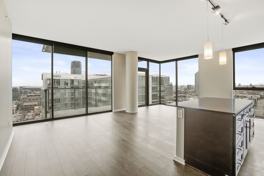 The apartment homes are exactly what you’d expect, with modern, open floor plans, large kitchens, and beautiful finishes. Each unit boasts wide plank hard surface flooring, quartz countertops with mosaic backsplashes, gas stoves and full-size in-unit washers and dryers. Breathtaking floor-to-ceiling windows and 9’ ceilings capture the essence of living in downtown Chicago. All units have electronic thermostats to control heating and air conditioning and some have balconies.