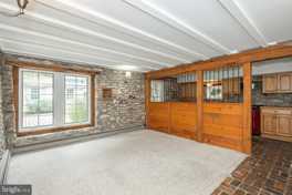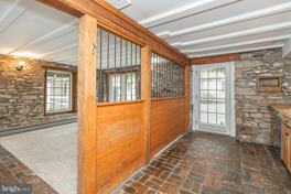 Nestled in a quiet community outside of New Hope and Doylestown, this cozy first floor, one bedroom apartment in Solebury Township is located in a converted barn. Brick flooring, stone walls, and exposed beams lend a unique charm. The galley kitchen offers an AGA stove, butcher block countertops and warm maple cabinets. The living room is accentuated with exposed beams, large windows and a barn stall room divider complementing the charming country setting. Updated full bath with tiled floors and tub shower provides access to the stackable washer and dryer. The bedroom with stone walls, antique brick flooring and large armoire is a scene out of Provence, France. Peaceful setting with views of gardens. Tenant responsible for electric, cable, and pest control. Heat, trash, and lawn maintenance included.