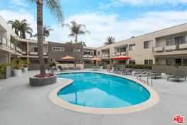 Bask in abundant natural light from morning to late afternoon in this newly renovated, TOP-FLOOR 2-bedroom, 2-bathroom condo, perfectly positioned in a coveted West Hollywood location just north of the iconic Laurel Hardware restaurant. Set within a chic Mid-Century building, the open and airy layout is enhanced by sun-drenched interiors, creating a warm, inviting atmosphere throughout the day. The gourmet kitchen features sleek quartz countertops, a handcrafted tile backsplash, and premium stainless steel appliances, along with the convenience of an in-unit washer/dryer. Both bathrooms have been luxuriously remodeled with in-shower seating, and premium stainless steel fixtures for a spa-inspired feel. Spacious bedrooms offer a serene retreat with designer wallpaper and authentic grasscloth accents for a blend of modern elegance and timeless style. Step onto the expansive covered patio to enjoy peaceful courtyard views framed by lush greenery and a classic kidney-shaped pool. Additional perks include a generously sized storage closet. With Whole Foods, trendy restaurants, and vibrant nightlife all just moments away, this home embodies the best of West Hollywood living in one of its most desirable spots. **Electric Washer/Dryer located to the left of the kitchen sink.**