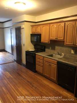 Heat, hot water and trash are included! The high ceilings and hardwood floors throughout the living area gives this apartment tons of character! The kitchen is semi-open to the living area and features hardwood cabinets and an electric range. The bedroom is spacious, bright and has cozy carpeted floors!
