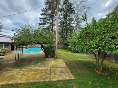 Gorgeous, cabin-style home with lots of wood and character! 3 large bedrooms, 2 bathrooms. The kitchen is embellished with updated appliances such as an electric stove cook top, separate wall oven, stainless steel dishwasher and Large Fridge (as is). A separate, open and elevated bar area is perfect for entertaining guests. A washer and dryer (as is) in the large laundry room are also provided. A carport with a large driveway provides ample parking. Landscaping front and back maintained by a gardener (included)! The backyard features beautiful landscaping and an in-ground pool (security fence and pool service included).