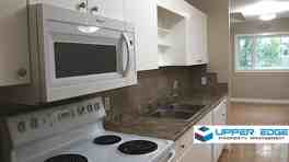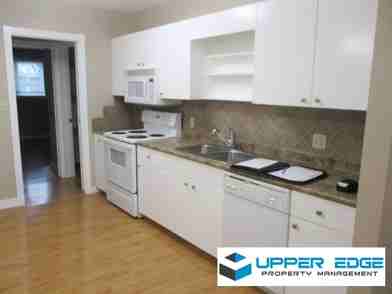 Offers laminate flooring throughout the unit, and an open concept layout, there is plenty of bright light within. Eat-in kitchen with painted wood cabinets, including a dishwasher and microwave. Living room, In-suite laundry, central air conditioner, a back deck, and a shared, partially fenced backyard as well! Access to a private deck off the living room. 3 cats allowed!