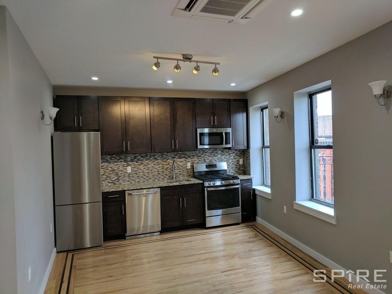 Be the first to live in this beautifully gut renovated 4 bedroom, 2 bath apartment (still under construction, photos representative of similar finishes)Apartment features 3 queen size bedrooms and a KING SIZED MASTER BEDROOM WITH WALK IN CLOSET. Generous living, dining and kitchen. Beautiful french doors will reveal corner living room. Stainless steel appliances, wide plank hardwood floors, exposed brick. Fourth floor corner unit (fantastic natural light) in an elevator building. Coin-operated laundry machines on every floor. On site management office. For additional information 646 331 6703 SPIRE626153