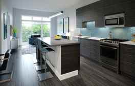 - modern kitchen features granite countertops and stainless steel appliances incl dishwasher