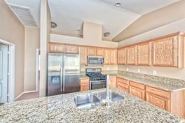 Cozy three bedroom single story home with large backyard. Formal front living room with plush carpet and dining area separate from kitchen. Kitchen features center island, recessed lighting and vaulted ceilings opened up to family room. Granite counter tops, stainless steel appliances and tile flooring. Family room features fireplace and access to backyard. All bedrooms feature ceiling light and carpet. Large master with vaulted ceilings and private ensuite bathroom. Double vanity and separate tub/shower. Backyard features small patio with rock landscape and trees. This family home will not last long!