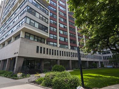 Wonderful SPLIT 2 BEDROOM, 2 FULL BATH OPEN FLOOR PLAN. The unit has been freshly painted, new carpeting in master and walk in closet, offers large updated kitchen with stainless steel appliances, under the cabinet lights, abundant solid surface countertops and an oversized breakfast bar. The large combined living and dining area offers engineered hardwood flooring and a full wall of fantastic west facing windows providing abundant natural light, beautiful sunsets and a view of Wrigley Field. Live across the street from the lakefront running/bike path and close to Jewel, coffee, tennis and all of East Lakeview's entertainment and restaurants. Building features door staff, fitness center, storage, amazing rooftop deck with spectacular lake and city views. The express bus stops directly in front of the complex. Unit features abundant closet space too, one of which is a huge walk in closet.