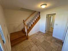 Spacious East Ventura Home! This two-story 4 Bedroom 2.5 Bath home boasts 2,630 square feet and has many interior upgrades. Beautiful travertine flooring flows through the first floor. Entering the home you are greeted with a large living room featuring tray ceilings and recessed lighting. This chefs kitchen has ample cabinetry, dark granite countertops and stainless steel appliances. A separate family room features a brick wood burning fireplace and gives you direct access to your backyard. All bedrooms are located upstairs with a dream primary suite! The primary bedroom is extremely spacious in size, with room for a separate sitting area, a walk-in closet and private ensuite bathroom. Patio doors from the primary bedroom exit to your large upper deck overlooking your backyard with multiple entertainment areas. Additional features include air conditioning and water softener (tenant maintains salt).