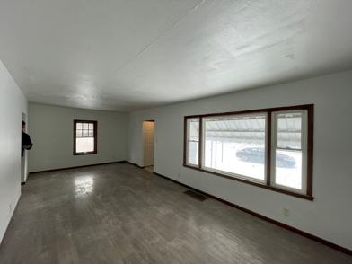 Newly refinished 2-bedroom 1-bathroom home with a large basement for storage, a garage, and an open backyard. It features a large living room, open kitchen, and lots of windows throughout for an abundance of natural light.