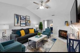 Charming 2 bedroom, 2 bathroom house features a fully equipped kitchen with stainless steel appliances including a stove, refrigerator with icemaker, dishwasher, microwave, and garbage disposal. The living area boasts vaulted ceilings and a fireplace, perfect for relaxing or entertaining guests. Walk-in closet for ample storage space in both bedrooms. Enjoy the convenience of a washer and dryer in the unit. Step outside to the fenced yard and soak up the Florida sunshine. Ceiling fans throughout, this house offers comfort and style in a desirable location. Don't miss out on this fantastic opportunity to make this house your new home! Home can come furnished for an additional fee.