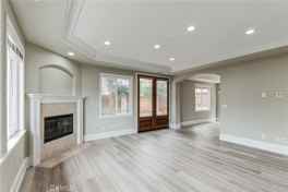 The gourmet kitchen is a chef's dream, featuring custom cabinetry, a pantry for ample storage, sleek stone countertops, and top-of-the-line stainless steel appliances. The spacious living room is a bright and open space, bathed in natural light. Crown molding adds an extra touch of elegance, while the Travertine fireplace creates a warm and inviting atmosphere. Outside, a private backyard awaits, offering a serene retreat for outdoor entertaining or peaceful relaxation. With a two-car attached garage, parking is a breeze, providing convenience and security.