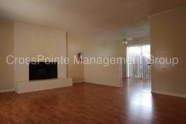 This unit features an open kitchen with breakfast bar. Appliances include refrigerator, stove, and dishwasher. Open dining room area, perfect for entertaining guests. 2 bedrooms with master entrance to hallway bathroom and hardwood flooring throughout and cozy fireplace!