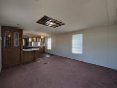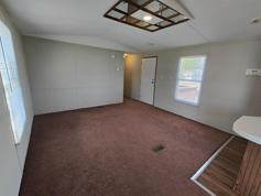 Spacious 3 bedroom/2 bath singlewide offers an open Living Room/Kitchen with abundant glass front, wood finish cabinetry & shelving and other attractive mirror features. Eat-in Kitchen with generous countertop workspace and a small breakfast nook. Dishwasher. Double stainless sink. Laundry Room with cabinets & hanger rod/standard unit ready. Master suite with double-door closet, garden tub, and shower stall. Laminate/carpet throughout. Freshly painted. New blinds.