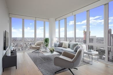 An exclusive full-floor rooftop with a swimming pool with BBQs. The lounge is a continuation of the building's modern architecture, featuring plush seating, high-definition television, Wi-Fi access, a pool table, and an entertaining kitchenette. The fitness is a state-of-the-art fitness center offering a rock climbing wall, free weights, high-tech cardio and strength training equipment. Additional amenities include a 24-hour attended lobby, bicycle, laundry facilities, valet service, a package room, and on-site parking. Access to N, 7, W, E, M, R, F, G trains. Easy commute to Manhattan.