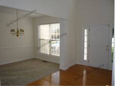 entry. Den has high ceilings, gas fireplace