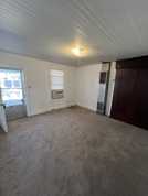 1 bedroom, 1 bathroom duplex unit with living room, kitchen with stove and refrigerator, and electric heat/ac window unit. Also has wall mounted gas space heater. New paint.
