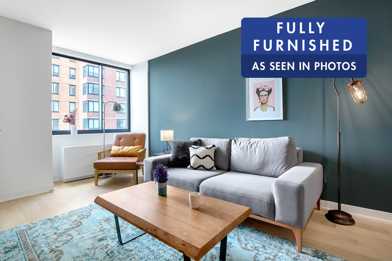 As with any Blueground apartment, you'll find a thoughtfully designed space complete with beautiful furniture and a fully-equipped kitchen in this one-bedroom property. And, thanks to our superior quality mattresses, luxury linens, and towels, you can relax knowing you'll always feel comfortably at home. When you're ready for some fun, you can take in the New York vibes or bring the entertainment to you with the premium wireless speaker or smart TV. This apartment also offers in-floor laundry.