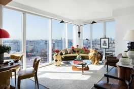 This elegant two-bedroom residence offers north and west views and features an in-unit washer/dryer, white desert oak flooring, floor-to-ceiling windows, solar shades, LED lighting and more. The kitchen includes a gas range, dishwasher, custom cabinetry, under cabinet lighting and Ceasarstone counters, while the bathroom offers a tri-view mirror with storage and custom European vanity.