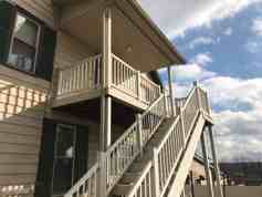 This is a 2 bedroom duplex. It has stairs. The master bedroom has a deck attached where you can relax and see all of New Castle. There is one bath upstairs. This apartment has full access to attic. The main floor has a vinyl porch out front. When you enter, you enter into a living room, dining room, kitchen, then mud room the toanother vinyl back porch, then to back yard. From the dining room there is a door that leads to basement where laundry facilities are. New carpeting downstairs. A stove and refrigerator are provided. Rent is $550 plus security deposit. You must pay utilities.