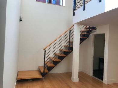 Phenomenal duplex condo which features a uniquely designed two level living space with the kitchen area above the dramatically sunken living room area below. There are large glass door leading to a private outdoor space ( below grade ). There are hardwood floors throughout and the apartment is equipped with central heat and air conditioning. The kitchen has all stainless steel appliances and there is beautiful modern full bathroom with heated floors upstairs. On the lower level there is a powder room. The master bedroom is on the upper level with a walk in closet, while downstairs there is 2nd bedroom / home office ( the lower level room does not have a window). The building features a free laundry room and there is roof access.