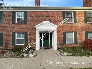 Freshly Updated! 1st floor unit with spacious living room, galley-style kitchen and 1.5 baths. New flooring and paint throughout! Large closets with organizers in bedrooms and hallway. Kitchen appliances included! Laundry room is steps away on the first floor. Detached covered one car garage space with storage area. Carriage Hill offers an in-ground pool and beautiful green spaces. Located within walking distance of downtown Brecksville and easy access to highways.