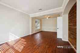 Warm character, generous living space, and four comfortable bedrooms come together in this 4-bedroom, 2.5-bath Allen home, offering a welcoming place to unwind and enjoy everyday living. The living area is open and inviting, with soft carpet underfoot and a ceiling fan that keeps the space comfortable year-round, creating a natural setting for relaxation and quality time.