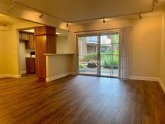 Downstairs condo with LVT throughout. Blinds throughout. Ceiling fan in the bedroom with large master closet. Tranquil community with ponds and waterfalls. A quiet and welcoming escape. Large 2-car detached garage with extra storage, laundry hookups located in the patio closet, gated community with pool and spa.