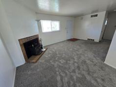 Inside, you’ll find a bright and functional layout with fresh carpeting throughout the living areas and bedrooms. The open kitchen features ample cabinet storage, generous counter space, and a breakfast bar that flows nicely into the main living area, creating a comfortable space for everyday living.