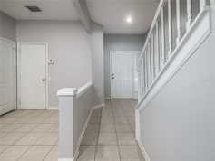 The home features an open floor plan with all bedrooms located upstairs and a convenient half bath downstairs. Enjoy comfortable living space along with a 1 car garage, screened lanai, and a kitchen with an eat in area. The kitchen offers light oak cabinetry, a double stainless steel sink, and new stainless steel appliances.