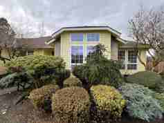 This well-appointed three-bedroom, two-bathroom home offers 1,953 square feet of comfortable living space and impressive outdoor features. The front yard showcases a beautifully maintained garden with a Japanese maple tree, thoughtfully placed shrubs, and a gravel walkway that provides both curb appeal and easy access. A wide driveway leads to the attached two-car garage, offering ample parking and storage.