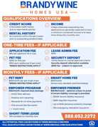 This home is exclusively offered by Brandywine Homes USA on a first-come, first-approved basis until the lease is signed and the security deposit is paid.