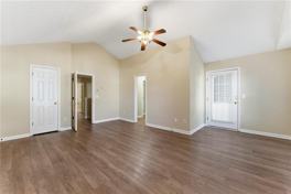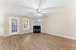 A covered entry leads to a foyer on the main level that opens up to a family room with ceiling fan & fireplace with access to the back patio. There is an open dining area adjacent to the kitchen with Oak cabinets, Formica counters, all new stainless appliances (refrigerator