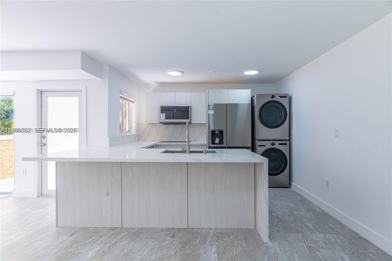 Completely renovated from top to bottom and two assigned parking spots! This beautifully renovated condo townhome combines modern style with cozy living, open floor plan to maximize flow and light. Featuring impact windows and doors, along with sleek modern glass stairs, adding a touch of elegance. The open concept layout perfect for seamless living and entertaining. The gourmet kitchen is equipped with custom cabinetry, sleek countertops, and brand new appliances. Stylish bathrooms with contemporary fixtures and finishes, brand-new flooring throughout, tankless water heater and new A/C.