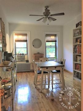Bright and spacious one bedroom with den. Apt has been upgraded with new wood floors, large galley kitchen with a real dining room and large living room. Large queen sized bedroom with great closet space. Den is large, can be used as an office or extra living space.. Heat and Hot water is included. This apt is on the top floor with high ceilings, only 1 flight up! Extra storage space. Half a block to Smith Street, located on a prime block, steps to F and G trains and so much more. LL may consider a small pet on approval