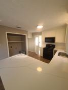 Open kitchen concept, granite, new appliances, new fixtures, fresh paint and flooring, large laundry, covered parking in rear. Central heat and air, yard care included. Fireplace