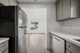 Carefully restored and designed by a renowned LA designer, these modern themed rental homes feature keyless entry door locks to spacious one bedroom and two-bedroom floor plans with newly renovated kitchen and bathrooms. The kitchen boasts sparkling white stone quartz countertops with brand new self-closing cabinetry and stainless-steel refrigerators with matching gas cooktop with oven and microwave. Stacked washer and dryers included inside each rental home with porcelain tiled bathtubs, oversized vanity mirror, and glass shower doors and some with separate guest bathrooms. Each rental homes also includes central A/C cooling, heating with recessed lights with distressed wood plank floors, and cellular shade window blinds.
